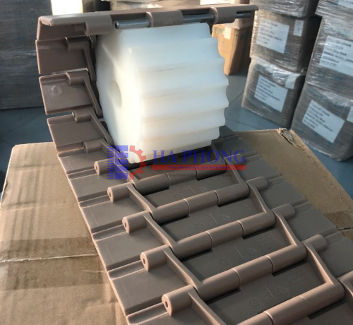 - Chất liệu cao cấp (POM): Được chế tạo từ nhựa Acetal (POM) có hệ số ma sát thấp, giúp tiết kiệm điện năng vận hành và giảm thiểu sự mài mòn cho cả xích và sản phẩm.