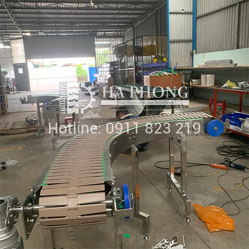 Trong dây chuyền xích nhựa chạy cong, cơ cong là một bộ phận không thể thiếu trong dây chuyền, do việc xích chạy qua khúc cua và tốc độ cao nên người ta đã thiết kế ra các dạng cơ cong khác nhau mục đích chính là để đảm bảo tuổi thọ của xích nhựa, sự ổn định của xích khi chạy với tốc độ cao