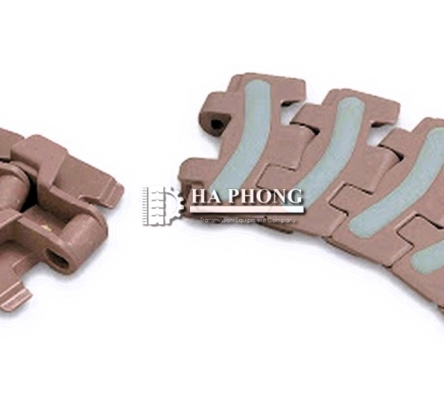 Xích nhựa 880: Thiết kế đặc biệt cho băng tải chạy cong, giúp di chuyển sản phẩm linh hoạt trên các đường cong, góc cong.